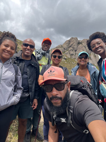 Nosso encerramento coletivo não poderia ser diferente, foi caminhando pela Estrada das Flores, uma das mais altas e bonitas do Brasil, onde cercados pelas montanhas do Planalto de Itatiaia, como se observados, abraçados e protegidos por essas guardiãs de tempo imemoriais, por onde muitos dos nossos parentes e aliados já andaram, sorriram, choraram e viveram, fizemos nossas partilhas e desabafos emocionados, com uma sensação de pertencimento e propósito renovado, em poder, poder negro acima de tudo.